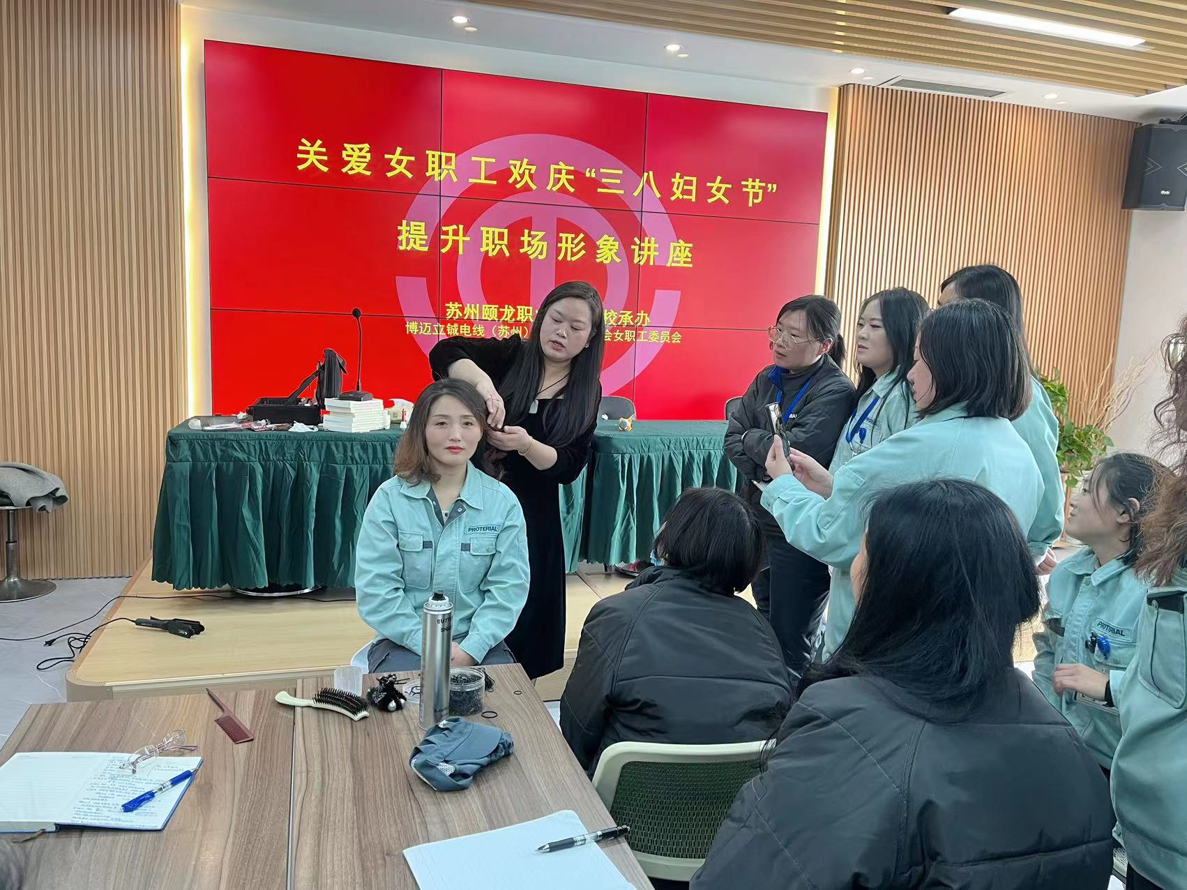 高嶺電子(蘇州)有限公司工會(huì)開展了法律咨詢進(jìn)企業(yè)活動(dòng),活動(dòng)共接收到職工咨詢?cè)V求62件,當(dāng)場(chǎng)解答問題55件,內(nèi)容涉及到家庭矛盾、婚姻、糾紛和教育等。博邁立鋮電線(蘇州)有限公司工會(huì)開展關(guān)愛女職工歡慶“三八婦女節(jié)”提升職場(chǎng)形象講座,深入淺出、全面細(xì)致地闡釋了禮儀所具備的端莊、干練、親和形象,對(duì)提升自身修養(yǎng)、促進(jìn)職工形象起到了積極的指導(dǎo)作用。松下新能源(蘇州)有限公司女職工們齊聚康乃馨服務(wù)站,參加“書香賦能·閱見美好”女職工讀書交流會(huì)、“特別的愛給特別的你”口紅DIY活動(dòng)。蘇州朗高電機(jī)有限公司為大家庭的每一個(gè)“她”定制了獨(dú)特的節(jié)日禮物和玫瑰花,并開展關(guān)于家庭與教育為主題的成長(zhǎng)沙龍。