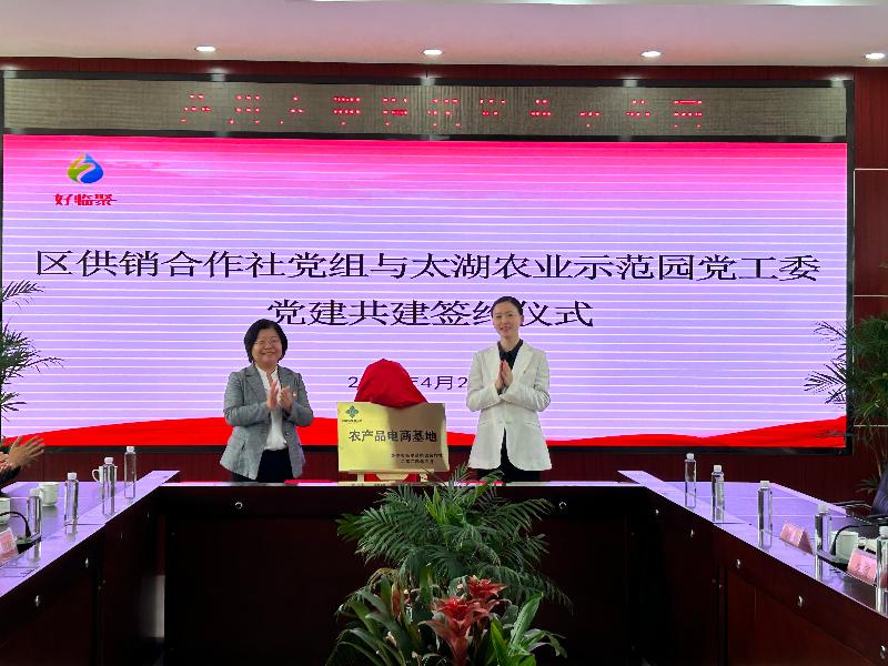 4月26日,區供銷社黨組與太湖農業示范園黨工委開展黨建共建簽約暨吳中供銷農產品電商基地揭牌儀式活動。區供銷合社黨組書記、理事會主任顧向明,臨湖鎮黨委書記李臻及相關鎮領導出席了本次活動。