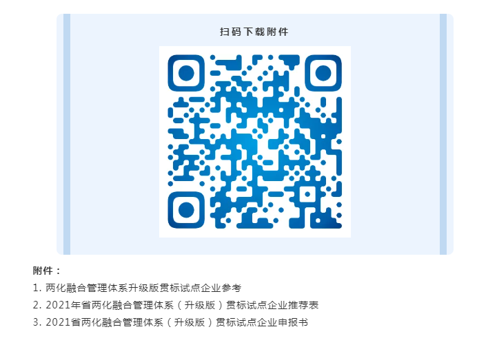 為認真貫徹省委省政府全面推進數字化的戰略部署,進一步落實《省經信委省國資委省質監局關于江蘇省深入推進信息化和工業化融合管理體系的實施意見》,根據工信部兩化融合管理體系工作部署要求,現開展2021年第二批兩化融合管理體系升級版貫標試點企業推薦工作。現將有關事項通知如下: