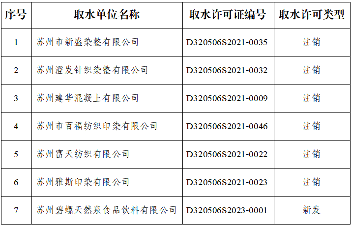 為貫徹落實最嚴格水資源管理制度,進一步規范用水戶取用水行為,依照《中華人民共和國行政許可法》《取水許可和水資源費征收管理條例》《取水許可管理辦法》《江蘇省建設項目取水許可審批要點》和《江蘇省取水許可實施細則(試行)》等法律法規,我局依法發放和注銷下列取水許可證,并向社會予以公告。自本公告發布之日起,注銷的取水單位如有取水,視為無證取水。取水許可證發放和注銷名單如下: