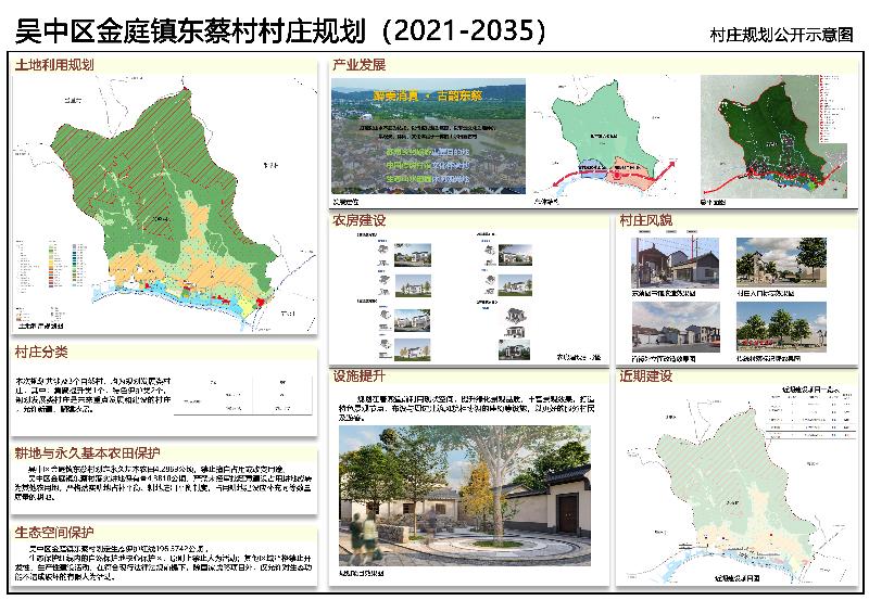 打造以山水本底為依托、以傳統村落為底蘊、以非遺文化為延伸的集觀光、休閑、文化體驗于一體的山水田園古村,將東蔡村定位為“醉美消夏·古韻東蔡”,目標打造蘇州鄉村旅游重要目的地、中國傳統村落文化體驗地、生態山水田園休閑觀光地。
