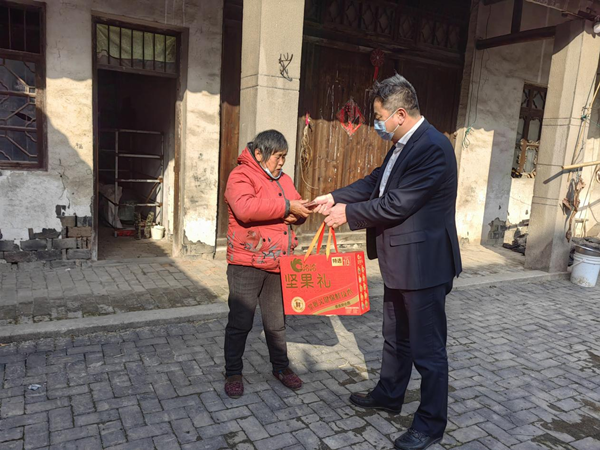 1月18日,甪直鎮黨委副書記、鎮長朱華平赴養老院、湖浜村走訪慰問。