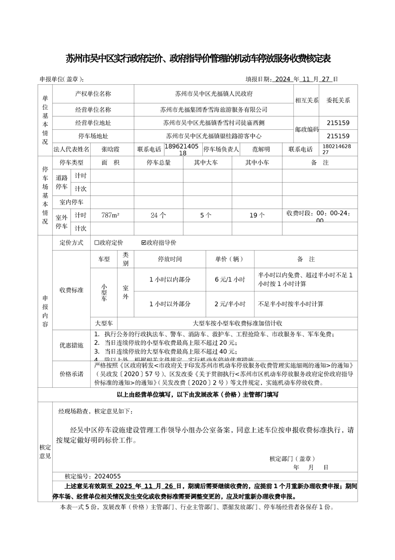 機動車停放服務收費核定表(2024055)(光福景區游客中心停車場)