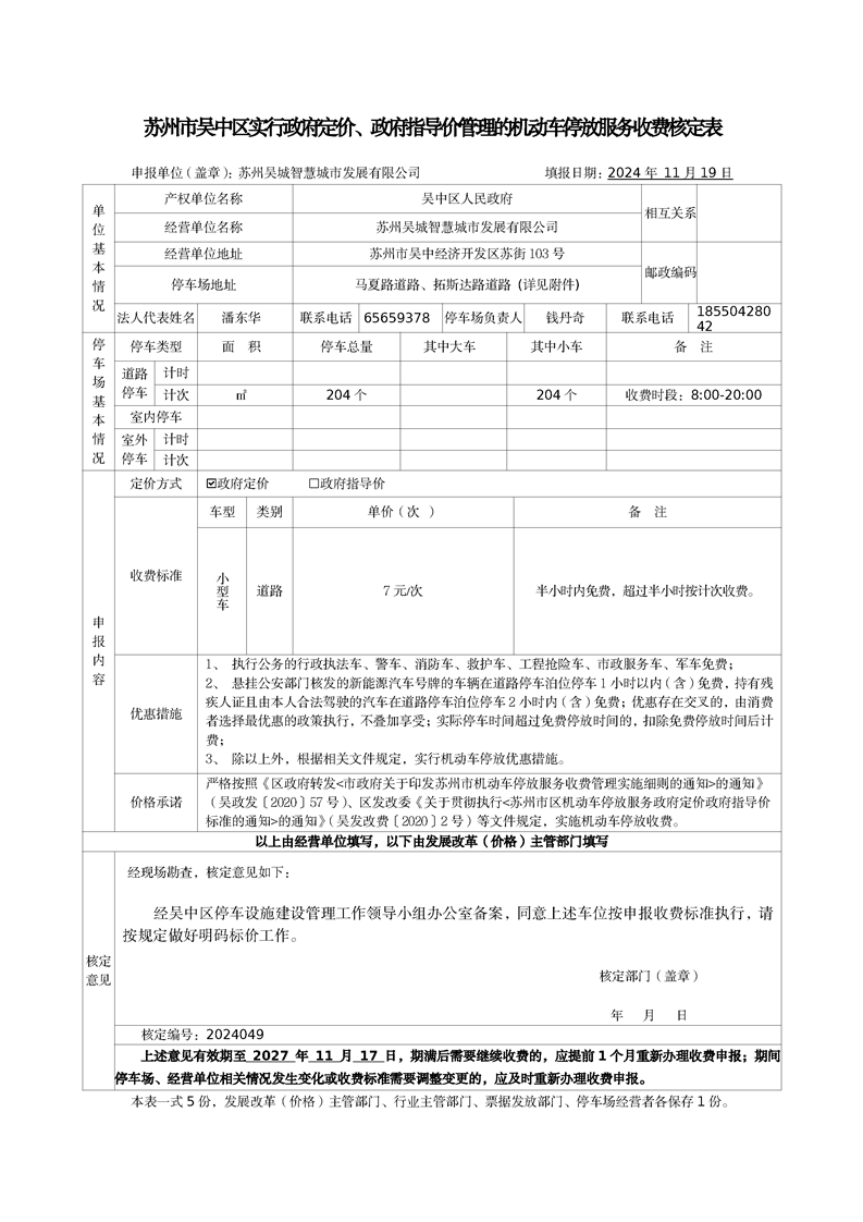 機動車停放服務收費核定表(2024049)