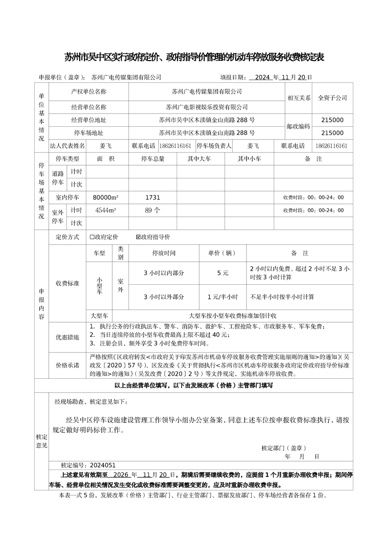 機動車停放服務收費核定表(2024051)