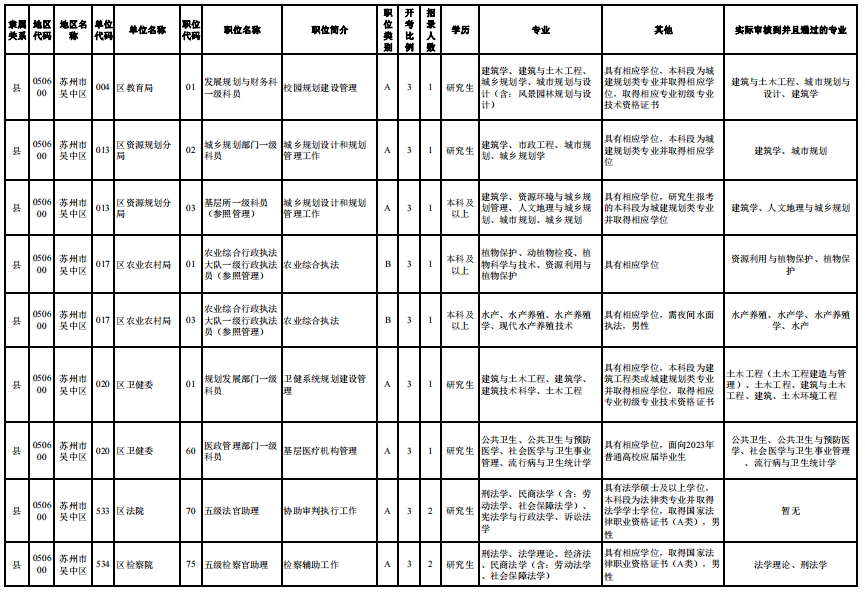 吳中區2023年度考錄公務員有關職位專業審核情況公示(2022-11-9)