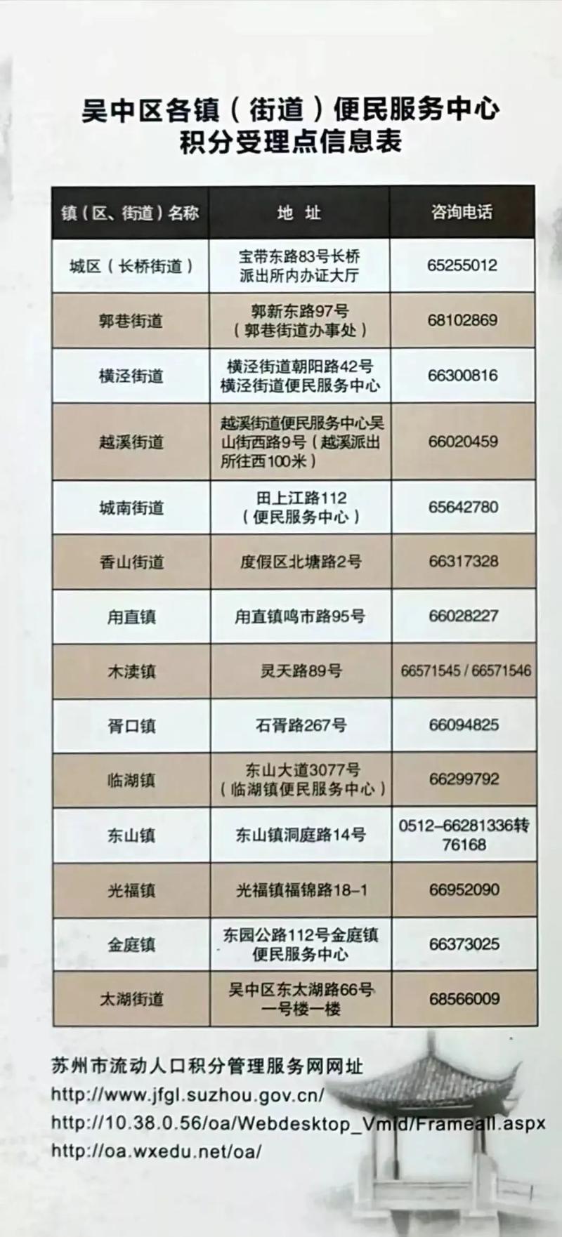 吳中區(qū)各鎮(zhèn)(街道)便民服務中心積分受理點信息表