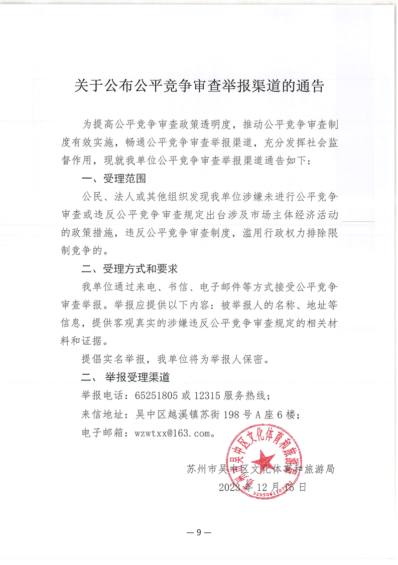 關(guān)于公布公平競(jìng)爭(zhēng)審查舉報(bào)渠道的通告