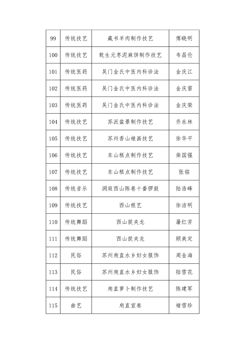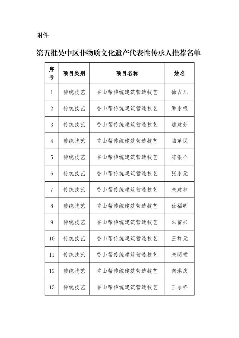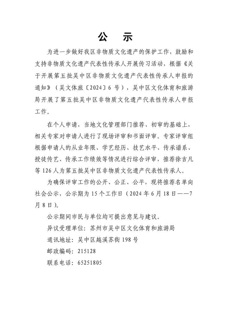 公示(第五批吳中區非物質文化遺產代表性傳承人)