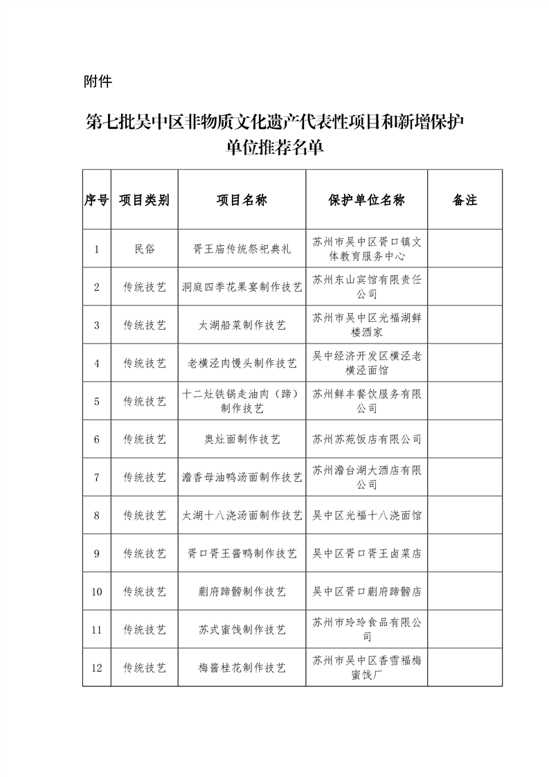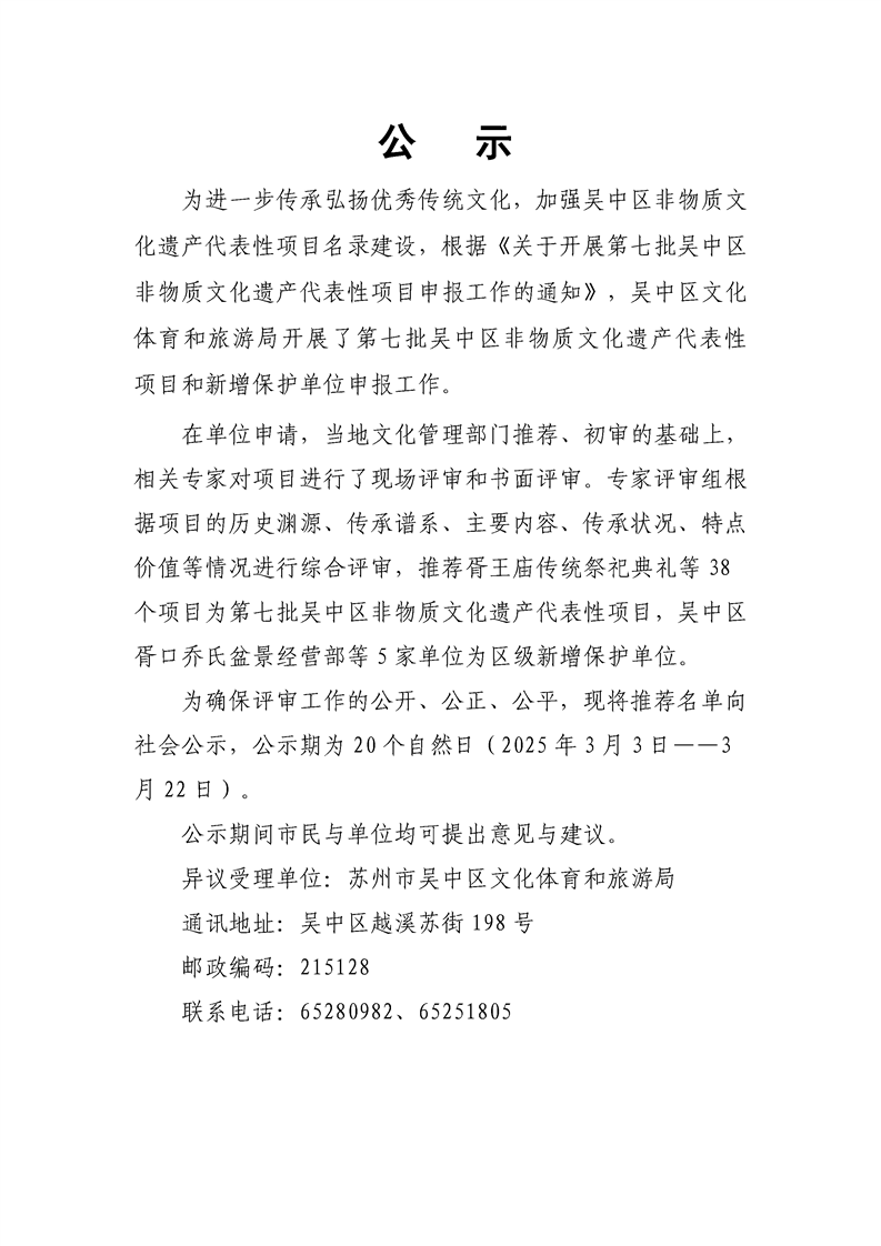 公示(第七批吳中區非物質文化遺產代表性項目和新增保護單位推薦名單)